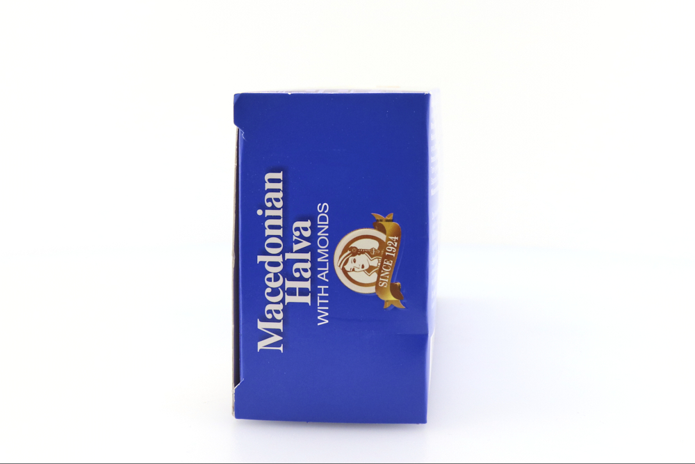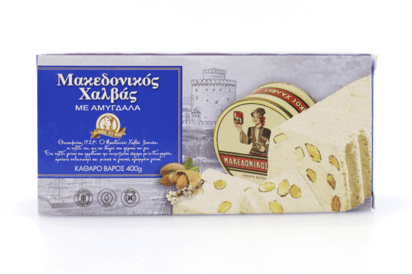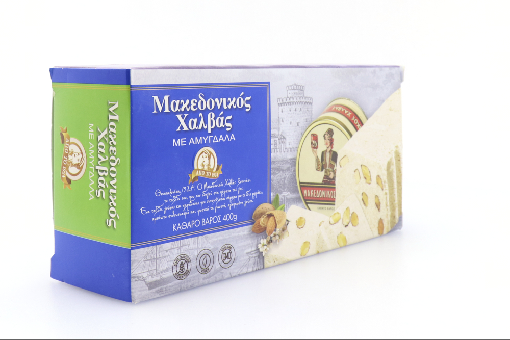 Οι παραδοσιακές μέθοδοι παραγωγής συναντούν τη σύγχρονη τεχνολογία και οδηγούν σε ένα γλυκό με αφράτη, μαστιχωτή υφή, αυθεντικό χαρακτήρα και σταθερή ποιότητα, του οποίου οι γεύσεις αναδεικνύονται σταδιακά στον ουρανίσκο. Ο Μακεδονικός Χαλβάς με Αμύγδαλα παράγεται από ταχίνι, δηλαδή 100% αλεσμένο σουσάμι - έτσι, είναι πλήρως ενταγμένος στη Μεσογειακή διατροφή και έχει υψηλή περιεκτικότητα σε ασβέστιο, σίδηρο, μαγνήσιο και φυτικές ίνες. Με άλλα λόγια, αποτελεί ιδανική διατροφική επιλογή για όλες τις ώρες, προσφέροντας στον οργανισμό την απαραίτητη δύναμη και ενέργεια και χαρίζοντας πλούσια γεύση!